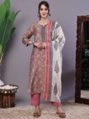 Women’s Pink Floral Chanderi Printed Kurta Set with Dupatta Suit Sets